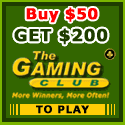 Gaming Club Casino offers a 400% bonus up to $200 to all new real players. They are part of the Belle Rock Gaming Group, which offers special promotions and giveaways to their loyal player base. This casino is one of the oldest casinos on the Internet, and they offer excellent customer support and fast payout's to their players. Also, you will receive points for every wager that you make at this casino and you can use those points to bet on cool gifts offered through their online auction. This casino has all of the top progressive slot machines, and almost every 3 Reel and 5 reel slot machine that is offered in the Microgaming Slots suite of games.